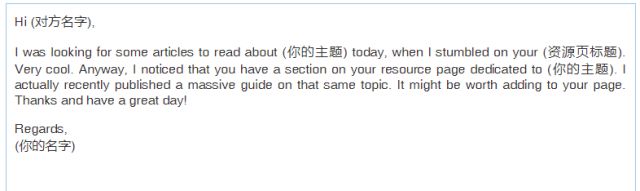 也可以发送邮件联系那些曾经链接过类似内容或分享过类似内容到社交媒体的人,如果他们喜欢你的内容,就会为你分享。邮件示例如下: